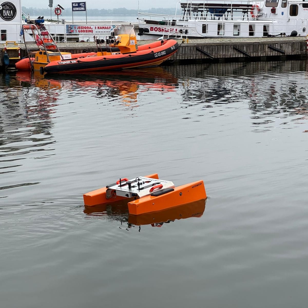 Dron USV, wyposażony w sonar jednowiązkowy lub boczny, pozwala na tworzenie map dna, które są niezbędne w hydrografii, inżynierii oraz badaniach naukowych.